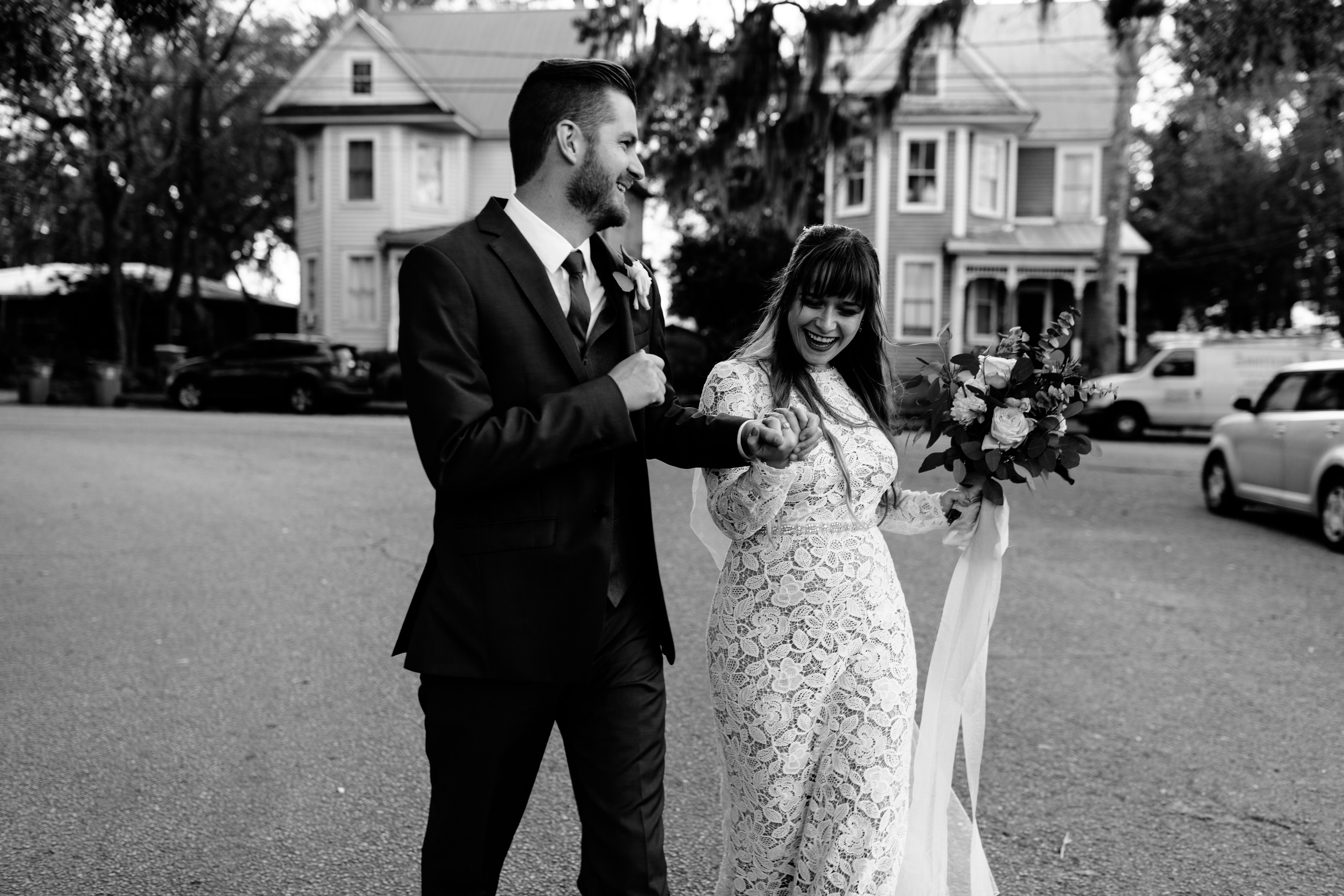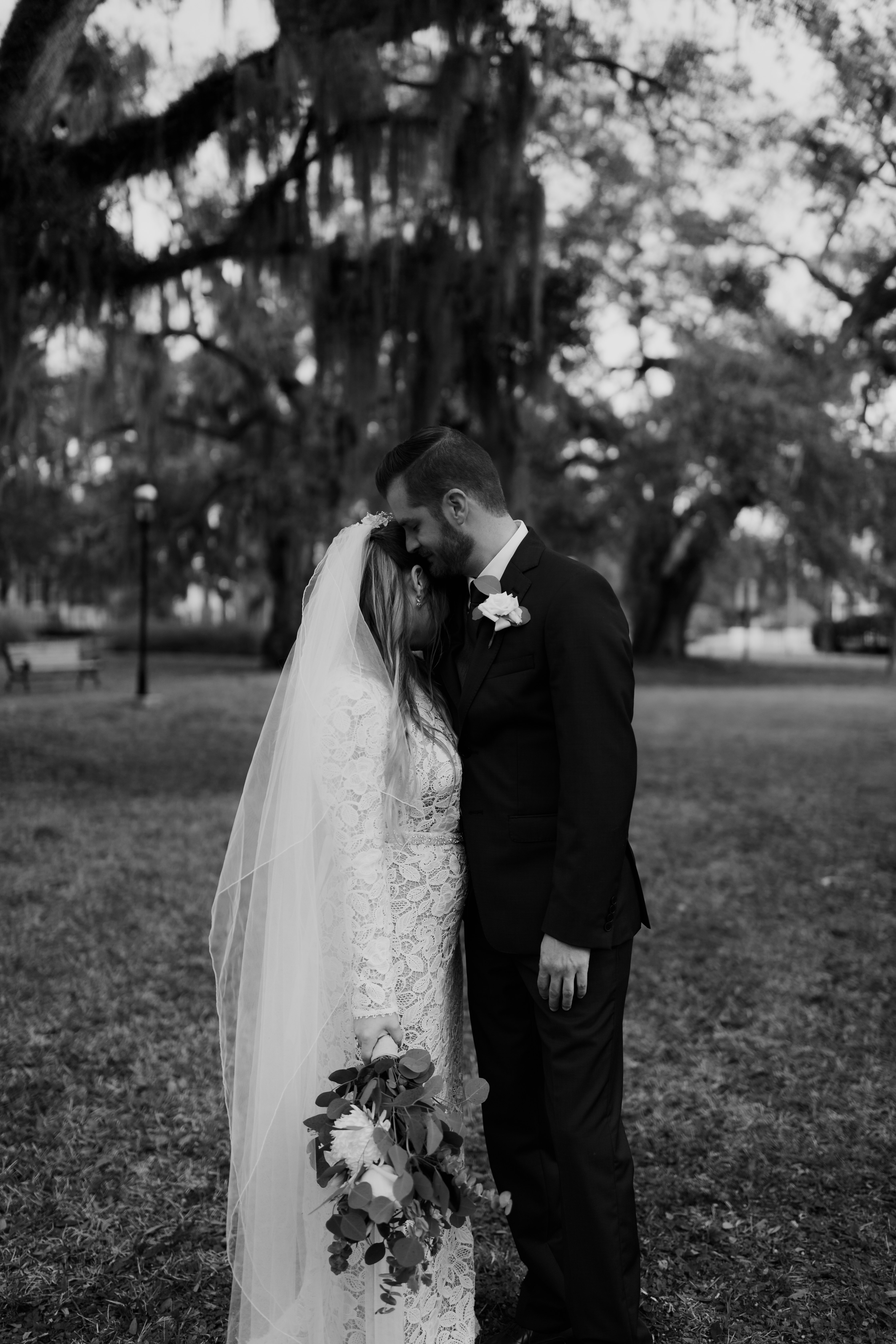 Kevin & Leah’s Boho Saint Simons Island Winter Wedding was a February dream. It was supposed to rain all day on their wedding day, but instead they were graced with sunshine, blue skies, and warm weather. Leah’s BHLDN lace gown & Free People velvet blue shoes were a dream. She looked just like a young Stevie Nicks, and her & her bridesmaids were a boho dream. Music is so important to both of these two, and so special to their story & it played a huge part throughout the day. Her brothers even played & sang during the first dances and it was so sweet. These two shared a beautiful & teary first look while exchanging letters they wrote each other. They said I do under the most beautiful Spanish moss & danced the night away with their closest of friends & family at the historic city hall. Thank you two for giving me the privilege of capturing your day.